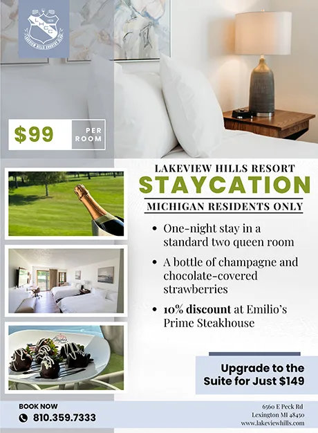 At Lakeview Hills Country Club & Resort, all the beauty and tranquility of Northern Michigan is yours to enjoy. Two exceptional golf courses, dining featuring Emilio's Prime Steakhouse, The San Marino Lounge & The Tin Cup Lounge. Brand new Events & Sports Center including 3 Indoor Pickleball Courts & 2 Foresight Golf Simulators.
